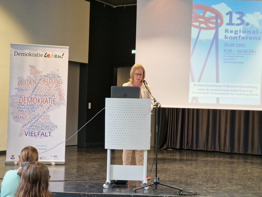 Auf Einladung der neu gegründeten Partnerschaft für Demokratie der Stadt Bargteheide fand in diesem Jahr die 13. Regionalkonferenz Rechtsextremismus & Demokratiestärkung im Kreis Stormarn statt. Rund 70 TeilnehmerInnen folgten der Einladung am 10.09.2022 in der Zeit von 09:30 – 16:30 Uhr in der Anne-Frank-Schule Bargteheide zu Workshops, Vorträgen und Netzwerkgesprächen. Auch unser Vorstandsmitglied Rolf Schlotter nahm an der 13. Regionalkonferenz teil. Mit dem Einführungsvortrag „Reaktion Straßenproteste ….. gesellschaftliche Polarisierung oder Ruck nach rechts?“ startete das Programm der Konferenz. Prof. Dr. Fabian Virchow führte kurzweilig wie informativ in die Thematik ein. Der gewählte Workshop „Bürgerliche Wut – Gefahr aus der Mitte“ geleitet von Andreas Speit und Torsten Nagel rundete mehr als zufriedenstellend die Veranstaltung ab.