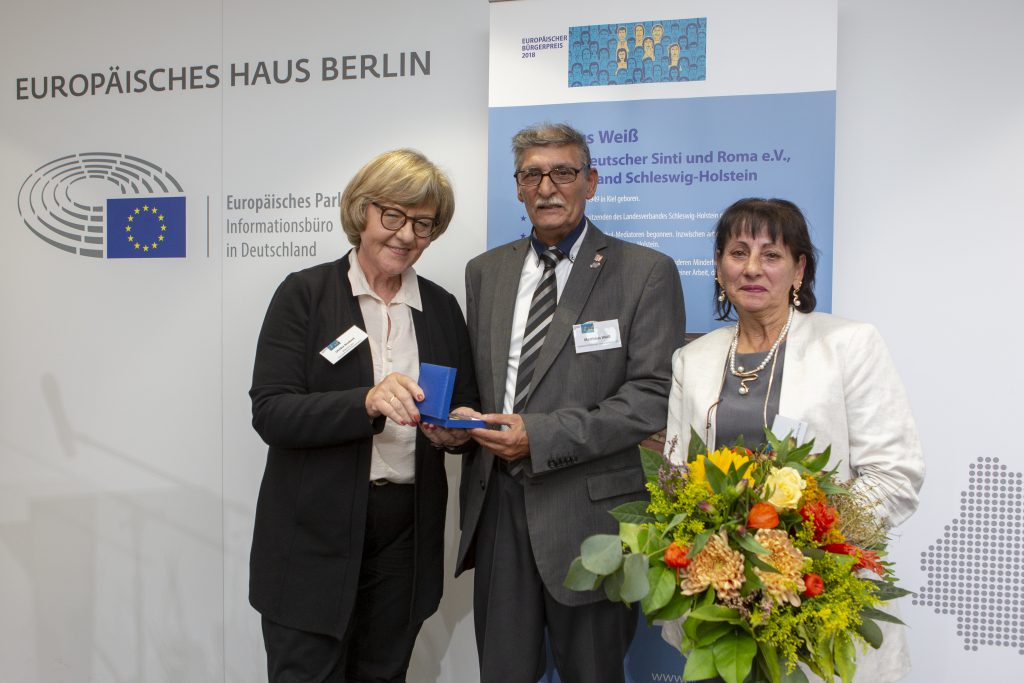 Der Vorsitzende des Landesverbandes Deutscher Sinti und Roma in Schleswig-Holstein, Matthäus Weiß ist mit dem Europäischen Bürgerpreis 2018 ausgezeichnet worden. Überreicht wurde ihm die Auszeichnung im Europäischen Haus in Berlin von Ulrike Rodust, die Weiß auch vorgeschlagen hatte.