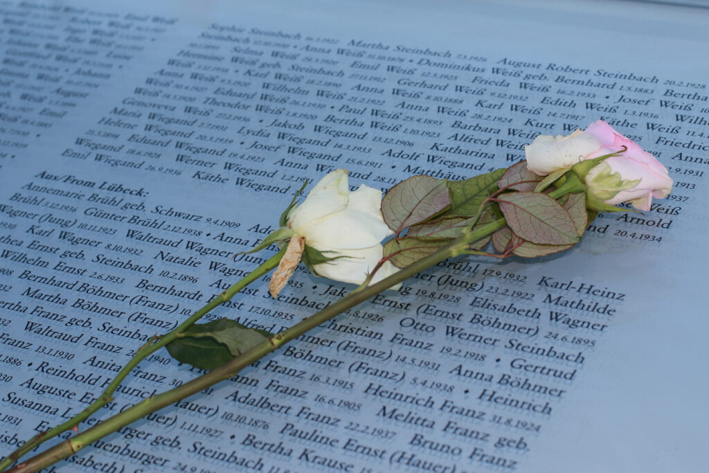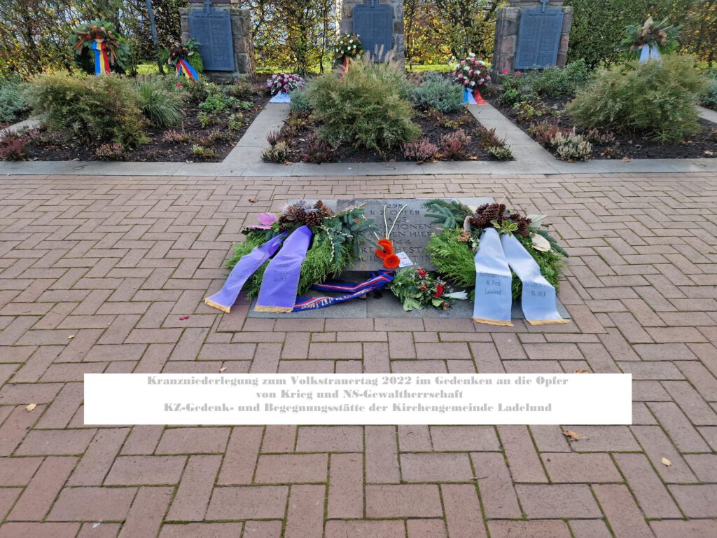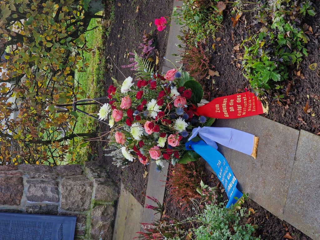 Die Vorstandsmitglieder des Verbands Deutscher Sinti und Roma e. V. gedachten der Opfer von Kriegen, NS-Gewaltherrschaft und Terrorismus und legten am Internationalen Mahnmal der KZ-Gedenkstätte Neuengamme, am Gedenkort Hannoverscher Bahnhof und an der KZ-Gedenk- und Begegnungsstätte Ladelund Kränze nieder. Insbesondere am Hannoverschen Bahnhof, ein Ort, von dem aus Tausende jüdische Mitbürger sowie Sinti und Roma deportiert wurden, stand klar die Forderung im Raum, dass auch der Holocaust niemals vergessen werden darf. Stehen wir gemeinsam auf gegen Gewaltherrschaft, Rassismus, Antisemitismus und Antiziganismus. Die Lösung: „Nie wieder Krieg. Nie wieder Faschismus.“