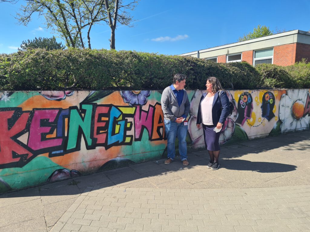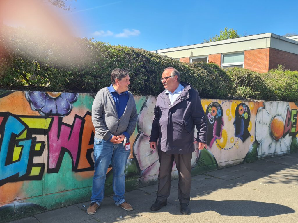 Der erste Kontakt und konkreter Terminierung für einen Workshop im Landesamt für Zuwanderung und Flüchtlinge in Neumünster ist für August 2022 hergestellt, wie die Aufnahmen zur Verabschiedung von Frau Henning, Herrn Szigeti und Herrn Schlotter vermuten lassen.