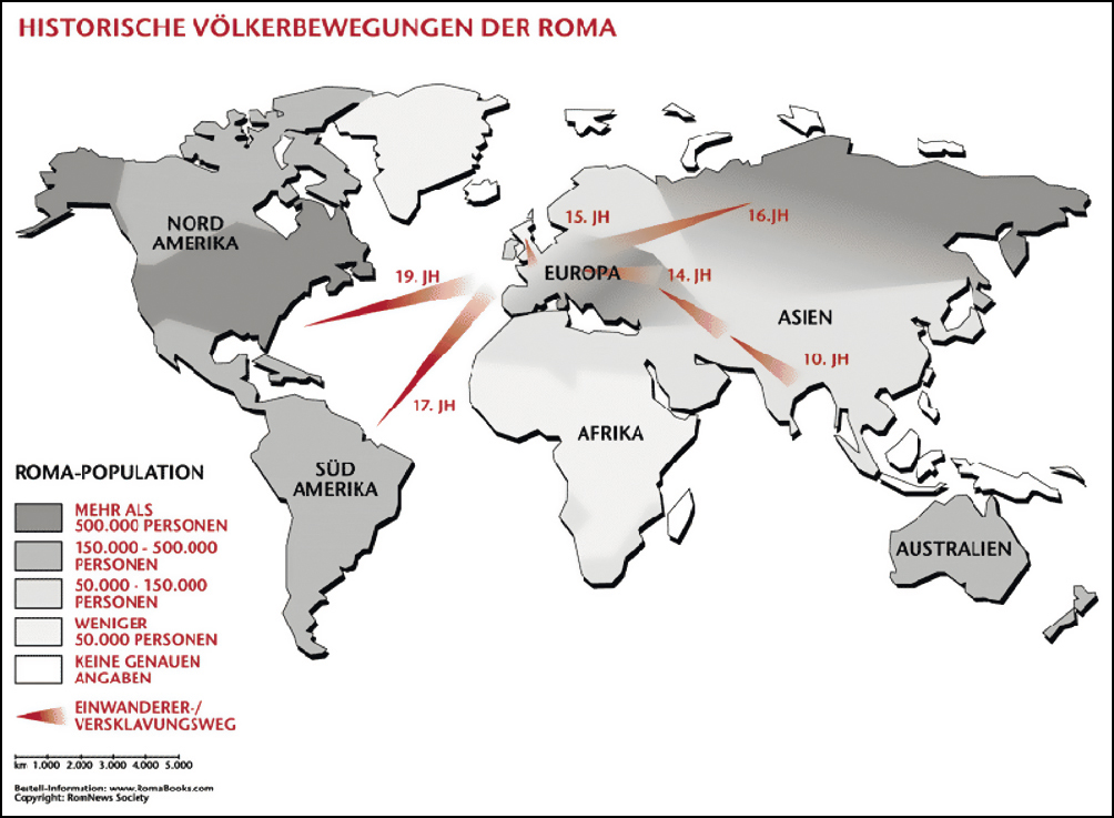 Der Begriff ‚Zigeuner‘ hingegen ist eine in seinen Ursprüngen bis ins Mittelalter zurückreichende Fremdbezeichnung der Mehrheitsbevölkerung und wird von der Minderheit als diskriminierend abgelehnt. Wird er im Kontext historischer Quellen verwendet, so sind die hinter diesem Begriff stehenden Klischees und Vorurteile stets mit zu bedenken. Etymologisch ist der Begriff nicht eindeutig ableitbar. Er beinhaltet sowohl negative als auch romantisierende Bilder und Stereotypen. Daher ist der Begriff zuallererst ein Konstrukt.